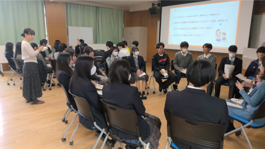普段、高校生が自分の将来について考えようとすると、進学や就職だけで考えてしまうことが多い中で、もっと広い視野で立体的に自身の人生について考えるためのヒントとして、4つの観点(仕事・愛・学習・余暇)を学びました。また、実際に子育てをしながら家庭や仕事、趣味とのバランスを取りながら生活されているゲスト2名の方からもお話を伺い、その人生モデルに触れながら自身の将来について考える良い機会になったと思います。ゲスト2名の方は、ともに他県から愛知県に引っ越してきたということもあり、将来生活する場が愛知県とは限らないということも実感できました。