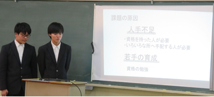 1月26日(月)、27日(火)、第1学年 総合的な探究の時間で行ってきた、課題解決学習の発表会を行いました。この活動は、自身の興味・関心のある分野を学び、自己を探究することで自己理解を深め、市役所や地域の事業所などと連携をしながら課題解決する力を養うことを目的としています。10月に各事業所等にフィールドワークに行かせていただき、今回は1年間の総まとめ、最終発表を行いました!!