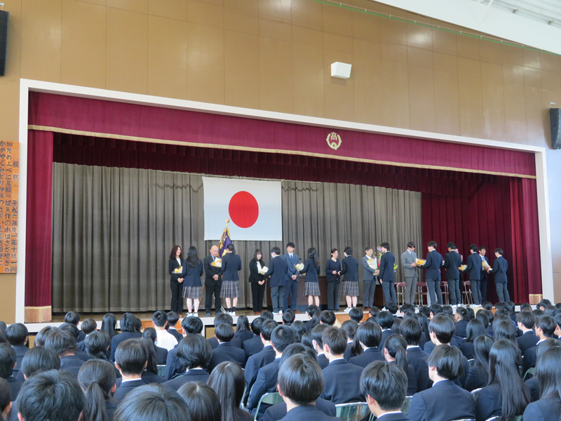 4月3日、離任式を行いました。今年度は離任される先生方も多く、離任式には10名の先生方を迎えました。
